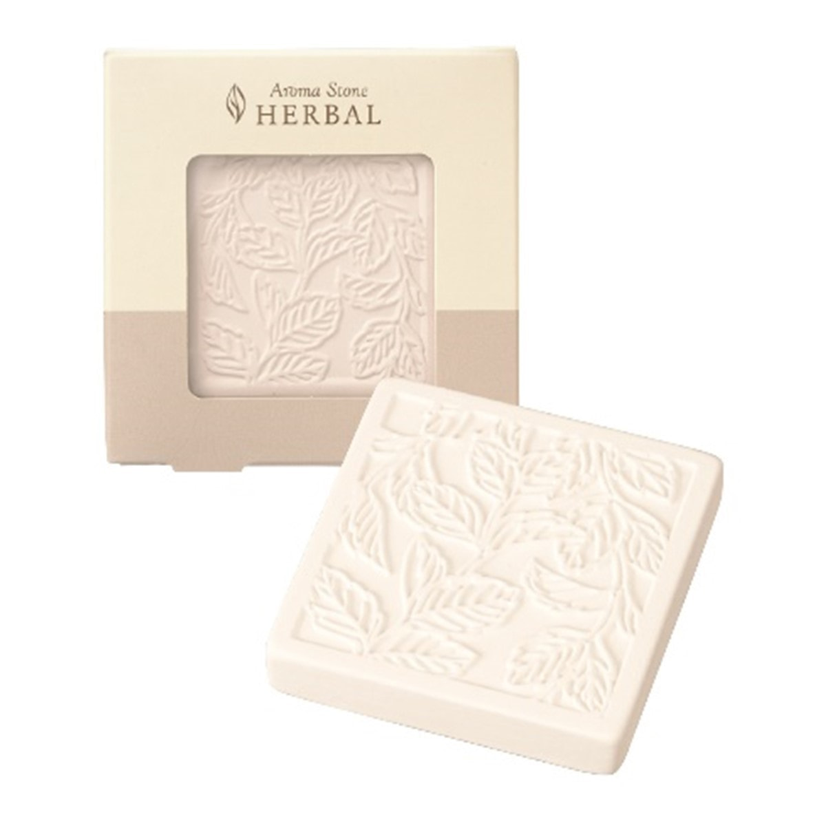 ミントのレリーフを施し、柔らかい色調に仕上げた素焼きのアロマストーンです。