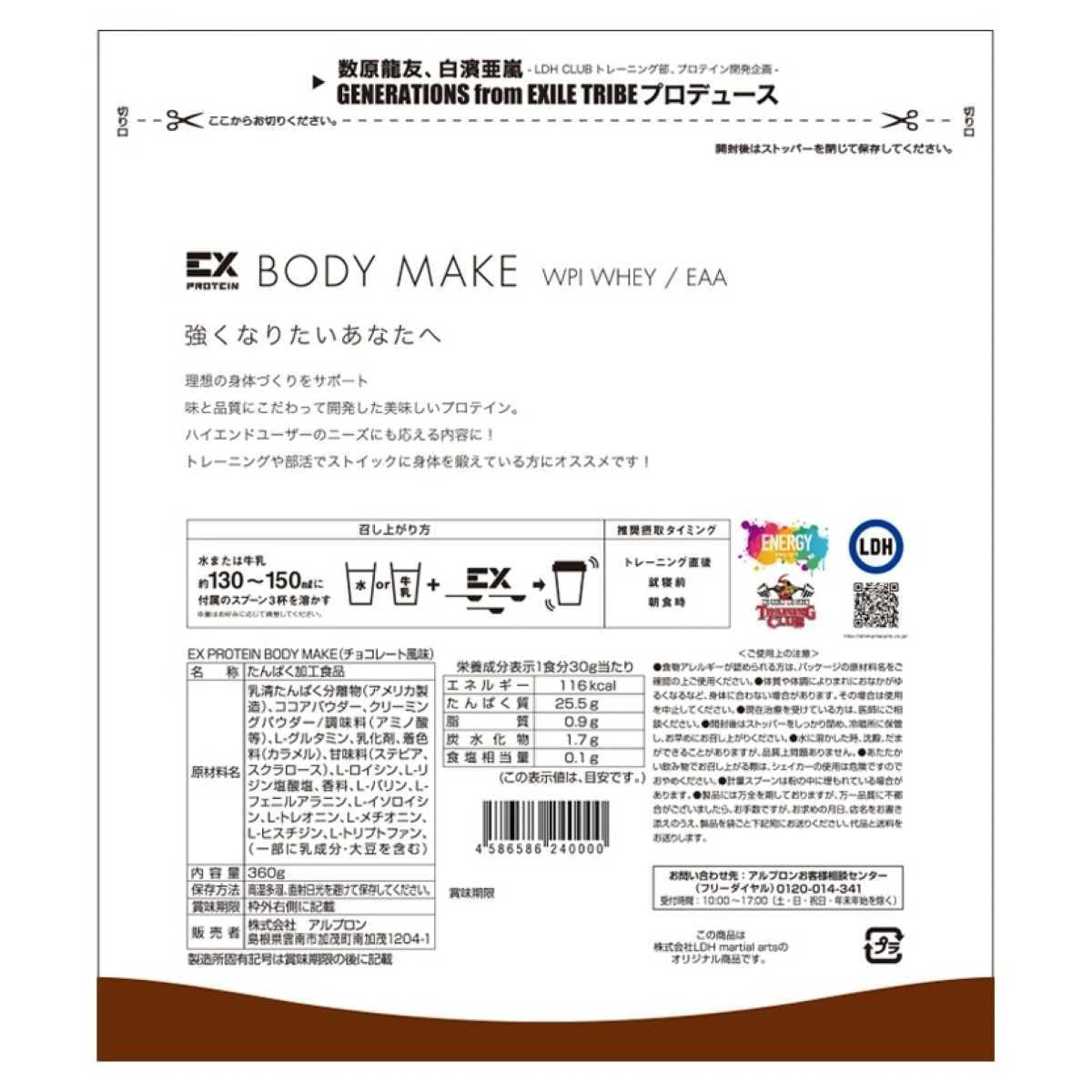 商品名:EX-BODY MAKE WPI ホエイプロテイン チョコレート風味 360g